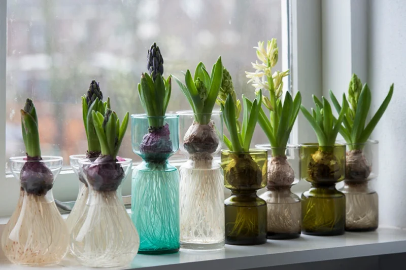 If you don’t have garden space or prefer an alternative way to grow hyacinths, you can cultivate them in glass jars or vases without using any soil. This method is not only decorative but also a great way to observe root development.